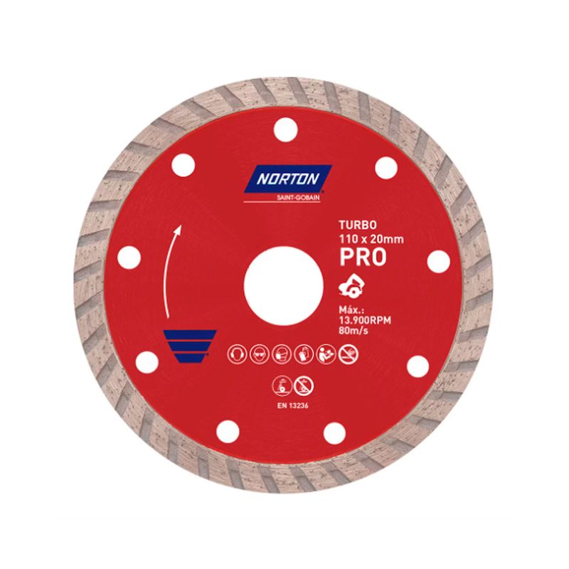 Ideal para uso profissional e doméstico, o Disco Diamantado 110mm Turbo-Pro Norton é perfeito para cortes em porcelanatos, granitos, mármores, concretos e outros materiais de construção.