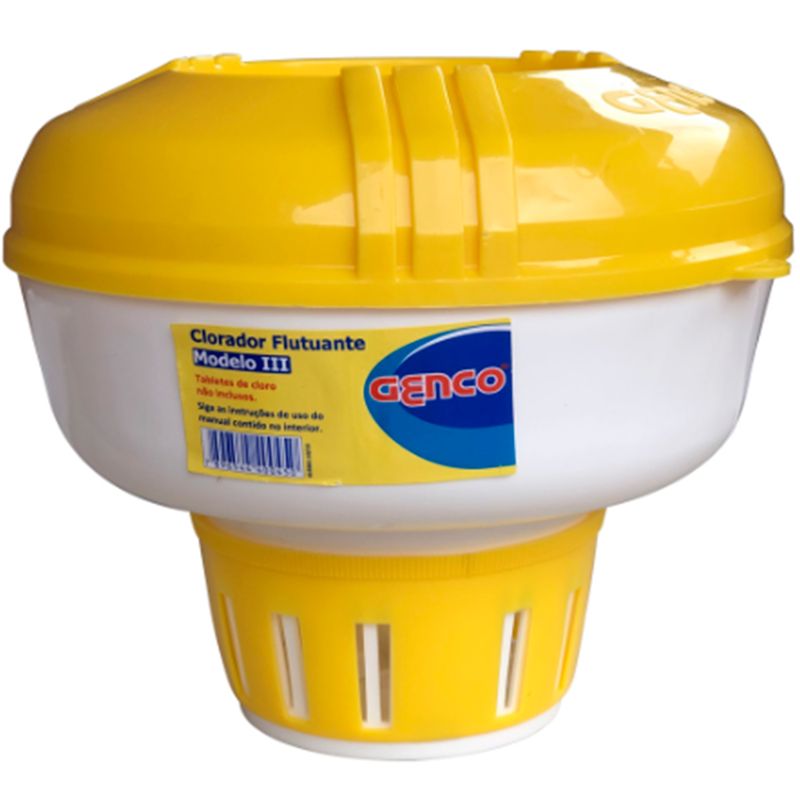 Tem capacidade para 1 kg de Cloro Estabilizado GENCLOR® Tabletes ou GENCO® Tabletes Múltipla Ação. (Não inclusos).