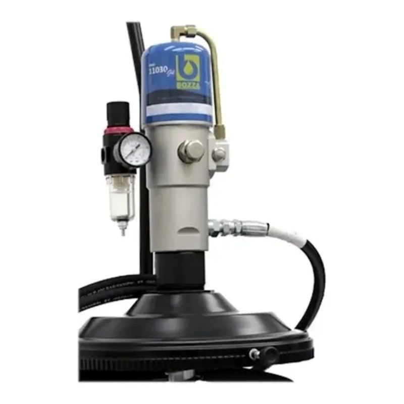 Bomba Graxa Pneumática Bozza 11030-G5 com Tampa para 20KG é um equipamento projetado para a aplicação eficiente de graxa. Sua configuração inclui uma