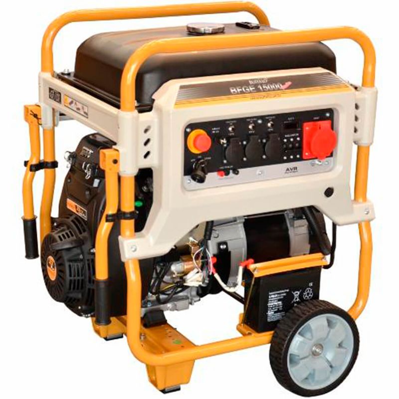 O Motogerador BFGE 15000 da linha master é equipado com motor 22,0 cv gasolina, fornece 11 kw de potência nominal, possui kit partida elétrica já com bateria, possui quadro, alça e rodas para facilitar o transporte, é ideal para ser usado em casa, no trabalho, construção civil, em momentos de lazer ou no campo.