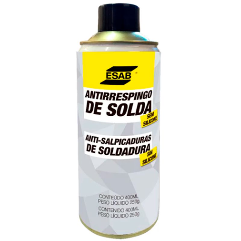 Antirrespingo Esab sem Silicone não afeta a qualidade e resistência das soldas, pois o produto é destruído pela alta temperatura. Pode ser usado em todo tipo de solda, e no caso do antirrespingo sem silicone, é ideal para superfícies onde haverá pintura posterior. É seguro para os soldadores, pois utiliza gás propelente não inflamável.