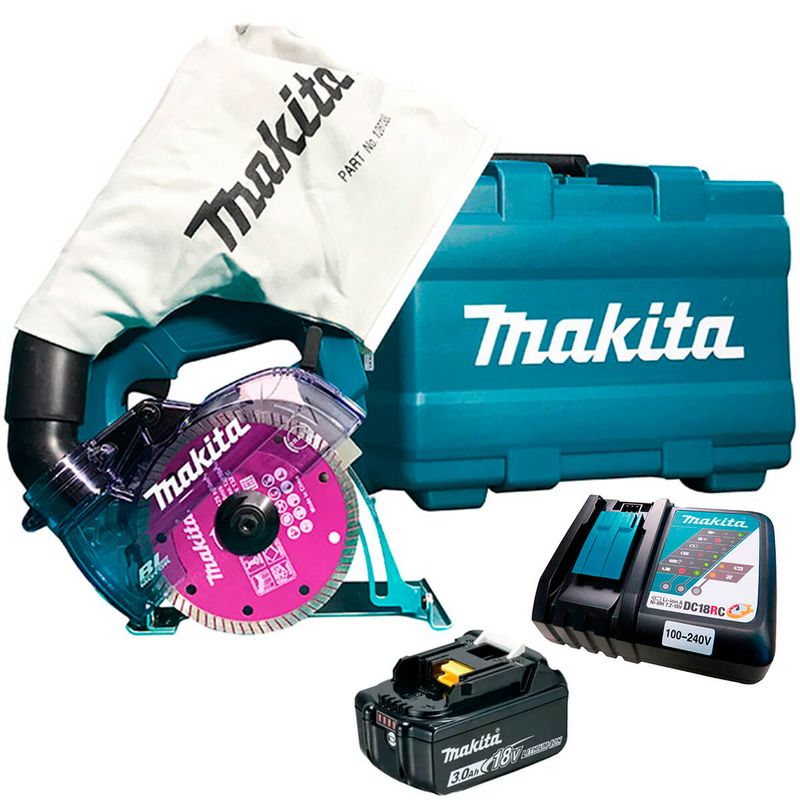 Serra Mármore Makita a Bateria DCC500RF-P 125mm com Bateria 18V LXT 3,0Ah e Carregador Bivolt com Disco Diamantado e Maleta