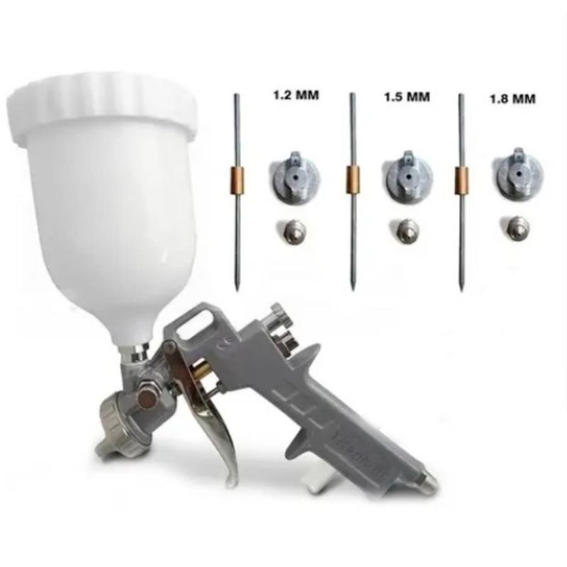 Acompanha 3 bicos (1,2mm, 1,5mm e 1,8mm) para diferentes aplicações. Um produto completo e de alta qualidade para quem busca um acabamento profissional em suas pinturas.