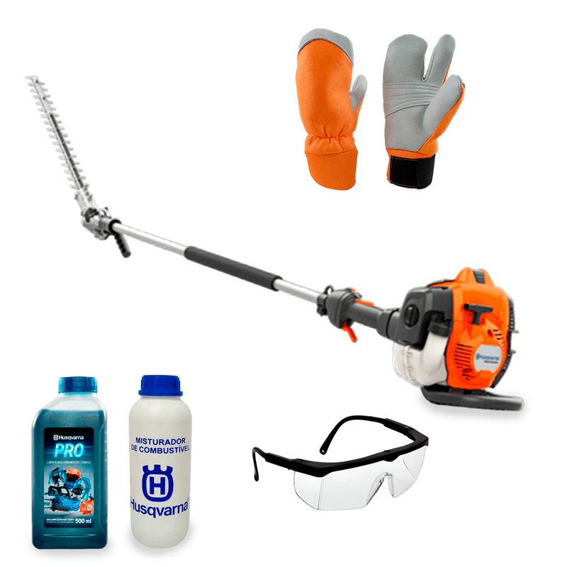 O Kit Aparador Cerca Viva Husqvarna a Gasolina 525HE4 C/ EPIS é especialmente projetado para usuários profissionais. Possui 25 cm3, com haste de alto alcance, barra de corte de 60 cm e alta velocidade da faca, conta com o alcance excepcional de até 4 metros, passo da lâmina de 37 mm e ajuste robusto de ângulo de trabalho de 135°, permite que você apare eficientemente todos os arbustos altos, largos e baixos