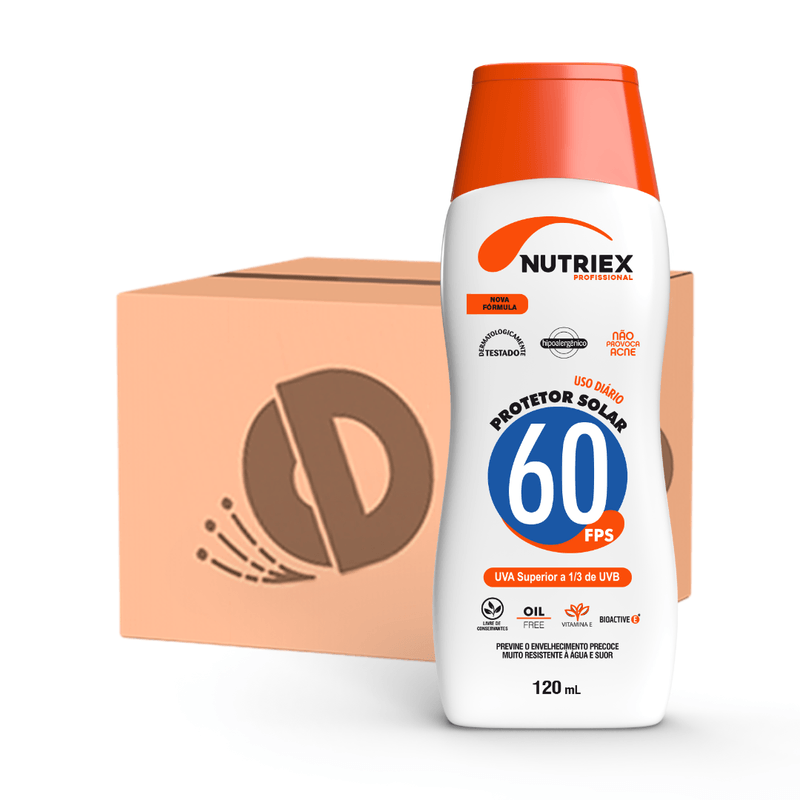 Com vitamina E, o Protetor Solar Nutriex UV FPS 60 proporciona hidratação e combate ao envelhecimento precoce da pele, além de ser resistente à água.