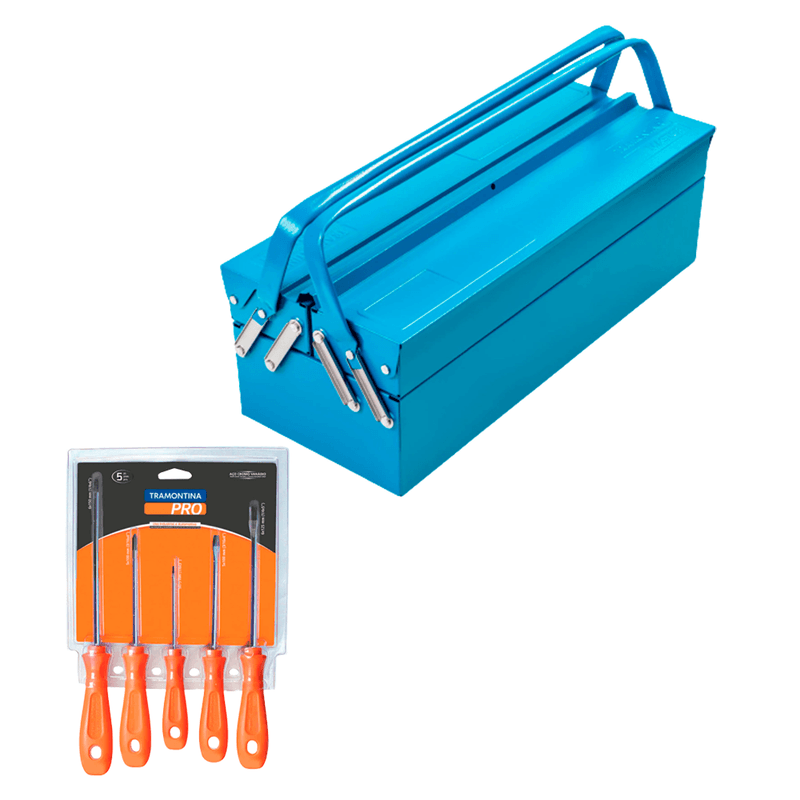 Kit Caixa De Metal Sanfonada Tramontina e jogo De Chave De Fenda Tramontina
