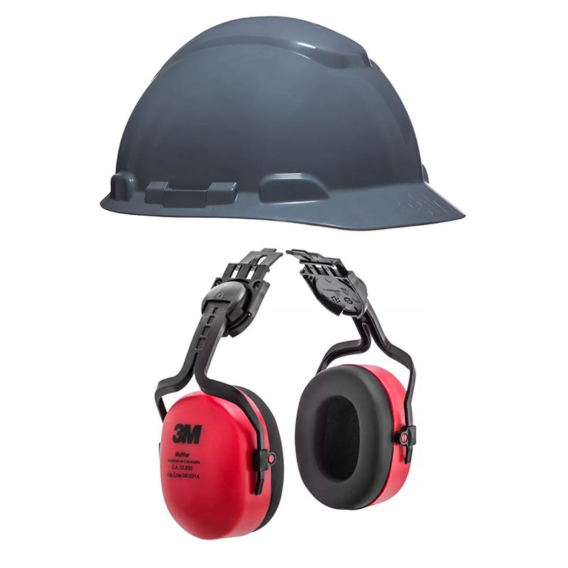 Kit Abafador De Ruído 3M Muffler 18Db e Capacete De Segurança 3M H-700 Aba Frontal E Jugular Cinza