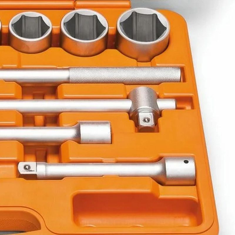 Jogo de Soquetes com Catraca 3/4" 19 a 50mm 20 Peças Sextavado Tramontina PRO 44861/220 é um conjunto de alta qualidade, projetado para profissionais que necessitam de ferramentas robustas e precisas para apertar e soltar parafusos e porcas sextavados em diversas aplicações.