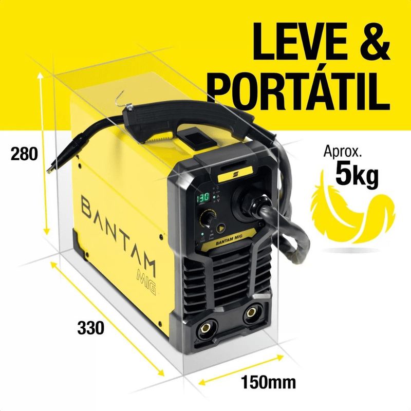 - Descrição: Máquina de Solda MIG S/ GAS Bantam MIG 130 - ESAB, ideal para diversas aplicações.