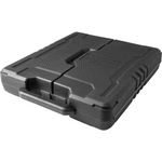 Acompanha uma maleta plástica resistente, facilitando a organização e o transporte das ferramentas.