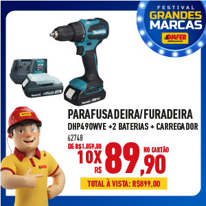 Parafusadeira Furadeira de Impacto Makita 18V 1/2" DHP490WVE com 2 Baterias e Carregador
