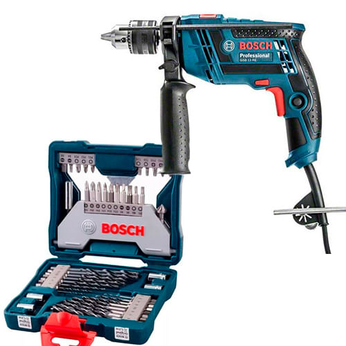 Furadeira Bosch de Impacto GSB 13 RE 650W com Kit 43 peças