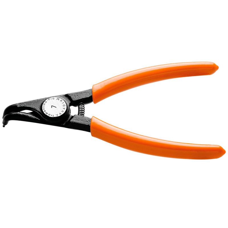 Com durabilidade e resistência aumentados devido à sua construção em aço cromo vanádio e acabamento fosfatizado, o Alicate Para Anéis Externo Curvo 7 pol possui cabos com revestimento especial e maior resistência, conforto e segurança em suas mãos. É o que você precisa para colocar e retirar anéis de equipamentos de forma fácil e sem muito esforço!