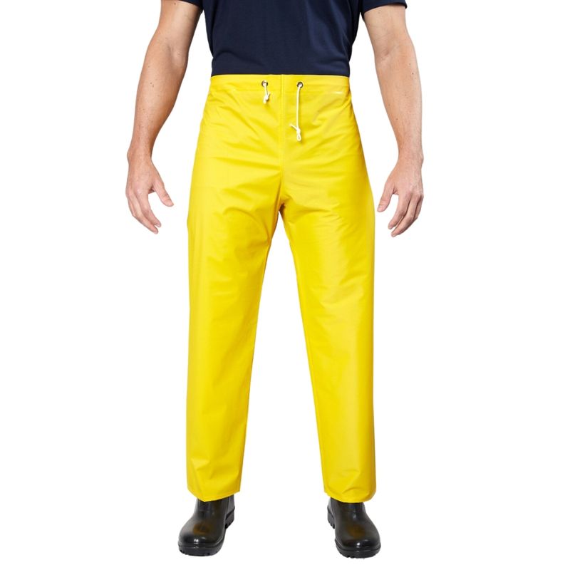 A Calça Impermeável Brascamp Confort em PVC Forrado é confeccionada em tecido sintético plastificado com PVC, com cordão na cintura para ajustes e costura através de solda eletrônica.