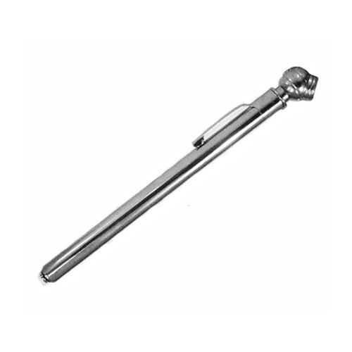 O Calibrador de Pneus Schrader para Ar e Água, é um Medidor de pressão utilizado em pneus de tratores agrícolas que utilizam água dentro do pneu. Corpo cromado e haste plástica, Escala de 4 a 50lbs graduado de 1 em 1lbs.