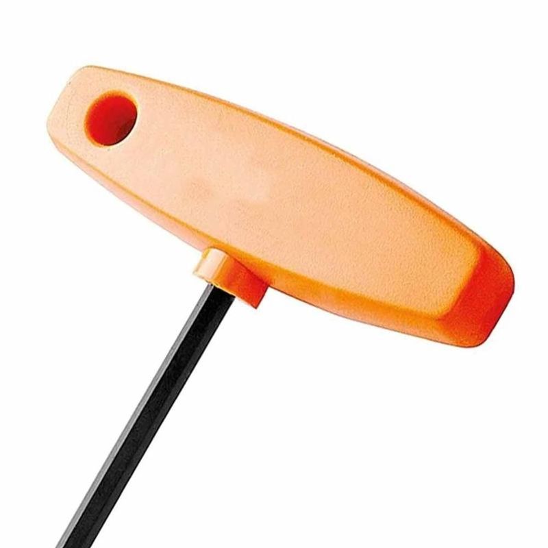 Possui cabo em forma de T, permitindo a aplicação de torque mais elevado e maior conforto durante o uso. Haste fabricada em aço ferramenta S2 temperada, garantindo alta resistência mecânica e durabilidade.
