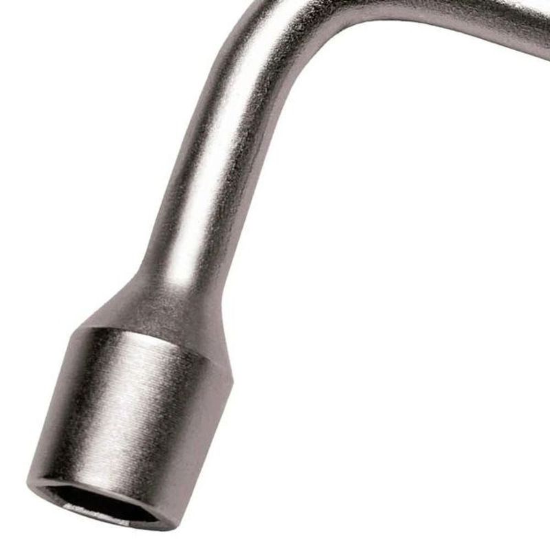 Possui formato em L, ideal para apertar ou afrouxar porcas e parafusos em locais de difícil acesso, proporcionando maior alavanca e precisão. Produzida em aço especial cromado, garante alta resistência e durabilidade, evitando deformações em tarefas exigentes.
