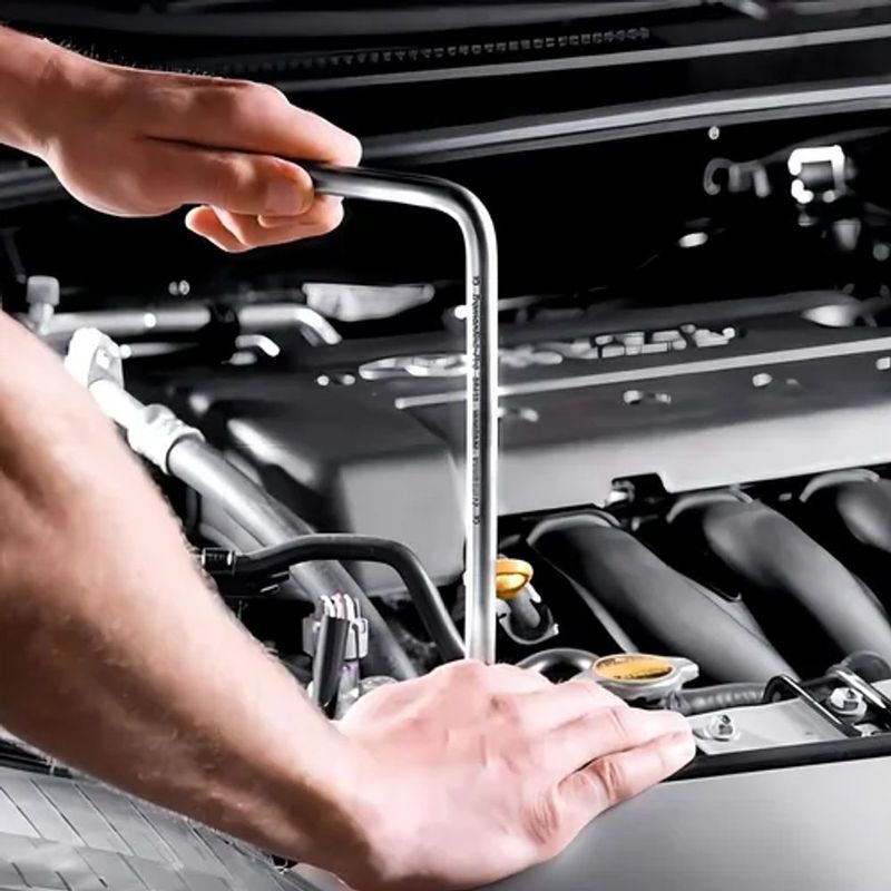 Possui formato L e extremidades em soquetes, ideal para alcançar parafusos e porcas em locais de difícil acesso com maior agilidade, sendo fabricada em aço cromo vanádio forjado e temperado, garantindo alta resistência e durabilidade para uso contínuo, conta com acabamento cromado, oferecendo proteção contra corrosão e um visual profissional.