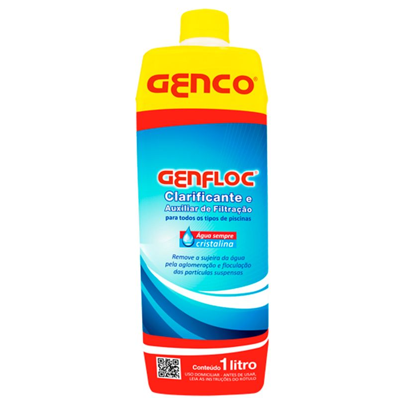 O Clarificante e Auxiliar de Filtração Genco é um eficiente clarificante a auxiliar de filtração para águas de piscinas. Sua ação floculante atrai eletrostaticamente as partículas de sujeira que normalmente passariam pelo meio filtrante e forma com elas flóculos grandes que o filtro passa a reter. Isso aumenta o rendimento do filtro. Os flocos maiores e mais pesados decantam para o fundo da piscina de onde podem ser aspirados normalmente. O resultado é a clarificação completa da água