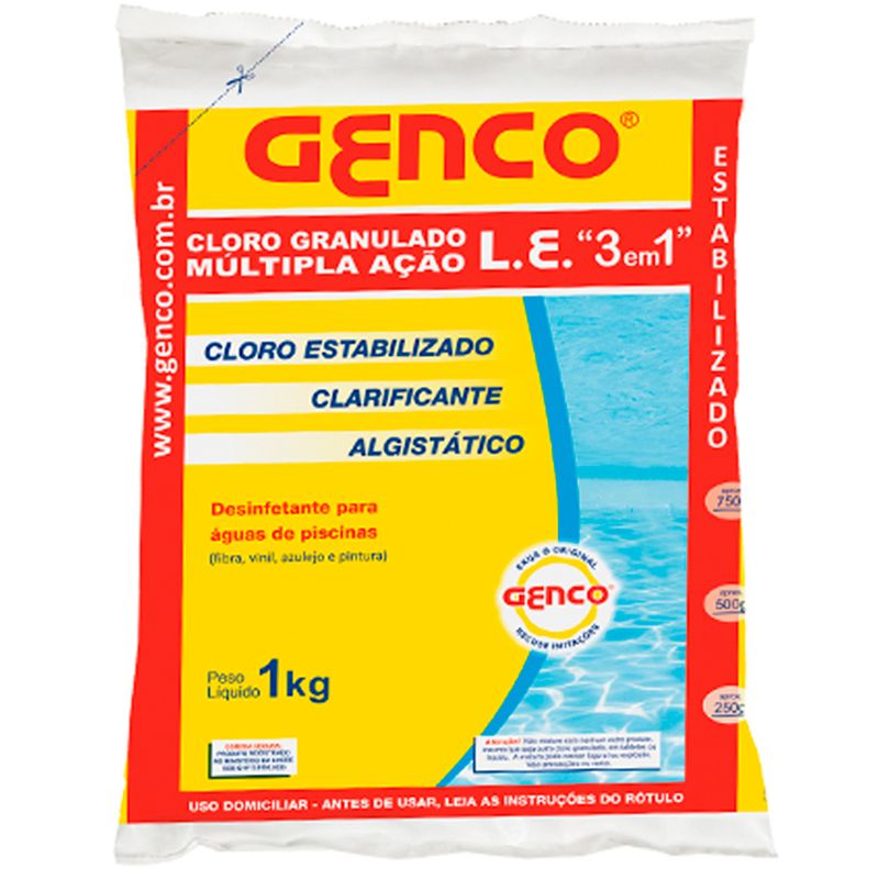 Casa e LazerPiscinasLimpeza e ManutençãoCloro para Piscina Genco 1 kg Granulado 3 em 1