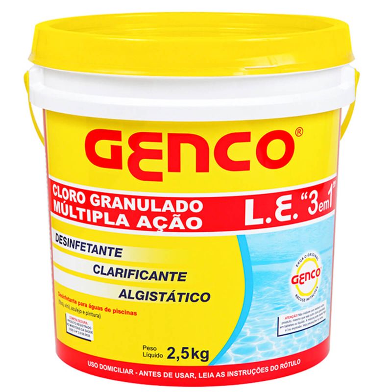 Cloro para Piscina Genco Granulado 3 em 1 Balde com 2,5 kg