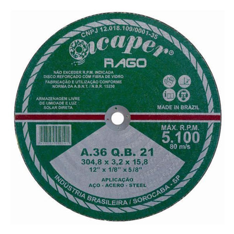 Com dimensões precisas de 12 polegadas de diâmetro, este disco oferece a combinação ideal de robustez e agilidade. Sua fabricação com óxidos de alumínio e reforço de fibra de vidro dupla garante alta durabilidade e desempenho.