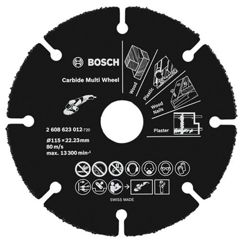 O Disco Corte de Madeira Bosch 115x22,23mm para Esmerilhadeira permite cortes rápidos, confortáveis e seguros devido os grãos de carbureto de tungstênio.