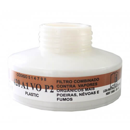 Filtro combinado referência 420 A1 VO P2 para respirador semifacial modelo AIR SAN utilizada como purificador de ar contaminado, retendo vapores orgânicos, poeiras, névoas e fumos