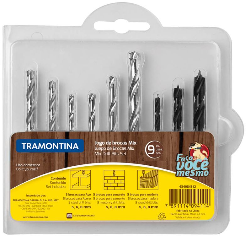O Jogo de Brocas Tramontina 43408/512 Mix com 9 Peças, garante Resistência e Durabilidade na perfuração de madeiras e concretos, as brocas da Tramontina estão disponíveis em milímetros e em polegadas. Para um trabalho bem feito, você precisa das ferramentas certas.