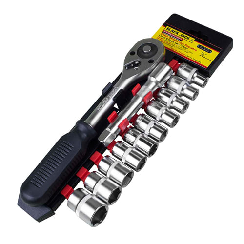 O Jogo De Soquetes Black Jack 12 Peças, possui soquetes, extensão para soquetes e chave catraca em cromo vanadium e a chave catraca possui cabo emborrachado. Esse material foi escolhido a fim de garantir melhor qualidade e desempenho de suas ferramentas, além de durabilidade e conforto. Essa é uma excelente opção para quem busca por acessórios e equipamentos da linha profissional da Black Jack.