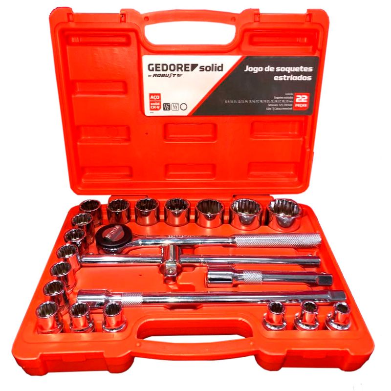 Jogo De Soquetes Robust Estriado 1/2 Pol. 08 À 32mm 22 Peças