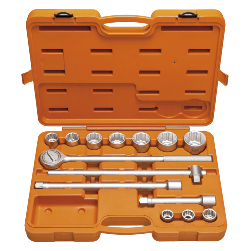 - 10 soquetes estriados: 22, 24, 27, 30, 32, 36, 38, 41, 46, 50mm