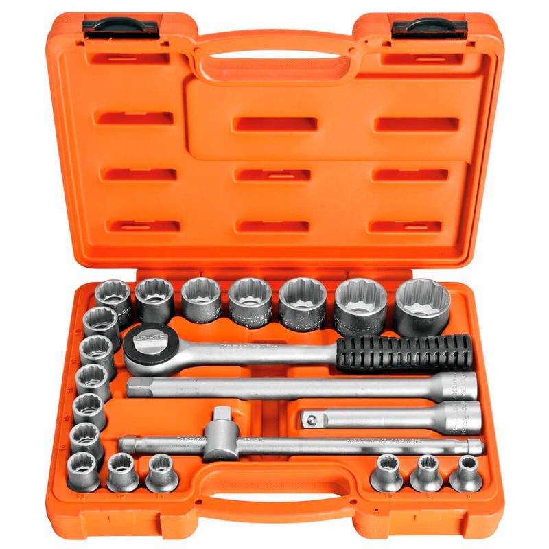 O Jogo de Soquetes Estriados Tramontina 1/2 Pol com 22 peças são indicados para afrouxar e apertar parafusos e porcas sextavados