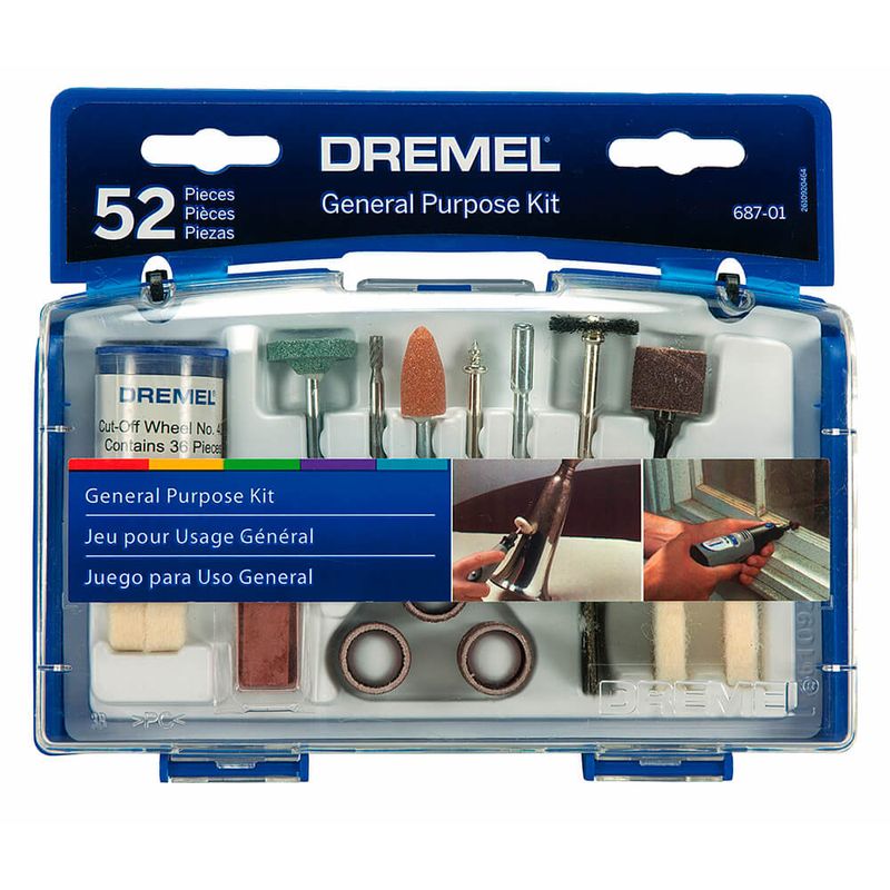 Este Kit Acessórios Dremel 687-01 com 52 Peças vem com 52 peças e, por isso, tem tudo que você precisa para cortar, contornar, lixar, esmerilhar, limpar, polir e muito mais