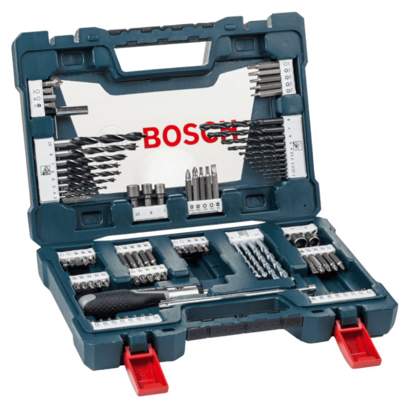 O Kit V-Line Bosch, inclui uma variedade de pontas e brocas, além de diversos acessórios que auxiliam em aplicações de parafusamento, perfuração e fixação. O design das Pontas foi desenvolvido para evitar o desgaste da cabeça dos parafusos trazendo maior firmeza durante as aplicações, e possuem o encaixe em formato hexagonal que evita o deslizamento na ferramenta. São acompanhadas também por um suporte universal magnético que possibilita trocas rápidas e a fixação segura das pontas