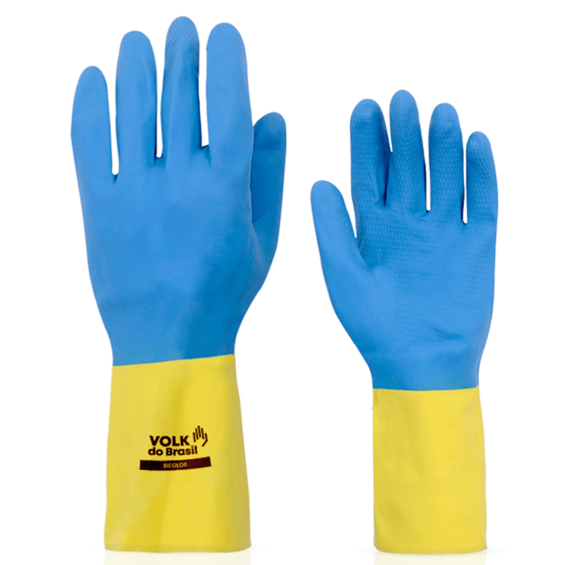 A Luva Latex Neoprene Volk Bicolor Slim é confeccionada em látex natural e revestimento na face palmar, ponta dos dedos e dorso em neoprene, acabamento antiderrapante na face palmar e ponta dos dedos, revestimento interno em flocos de algodão.
