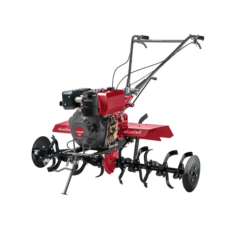 O Motocultivador Branco a diesel BTTD 10.0, com partida elétrica, é ideal para revolver o solo para hortas ou camas aviárias de pequenas propriedades.