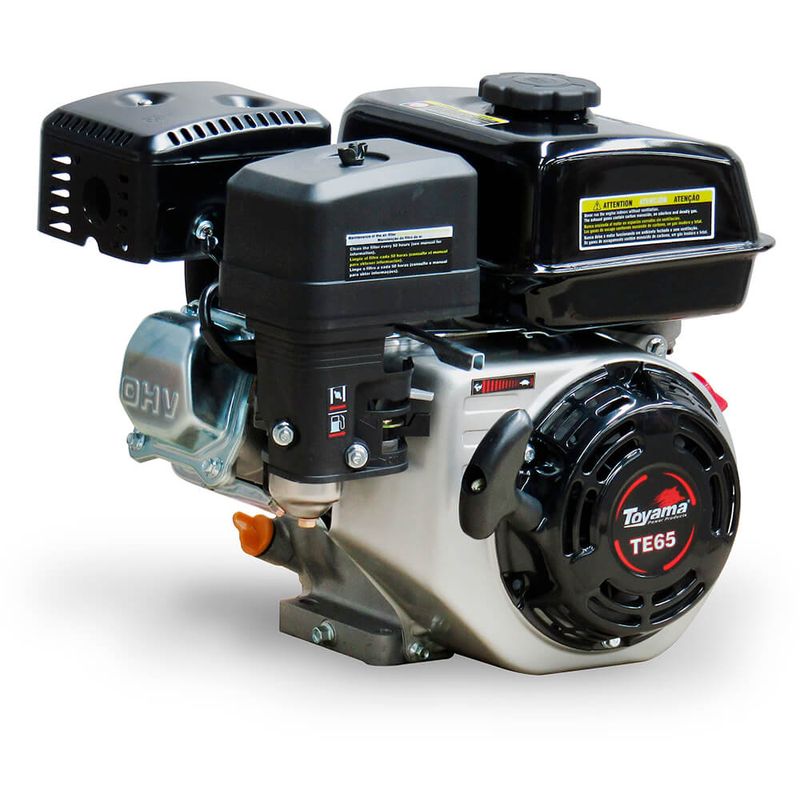 O Motor a Gasolina Refrigerado a Ar Toyama TE65-XP, foi projetado para uso profissional. Possui 6.5 HP de potência máxima a 3.600 RPM. É equipado com eixo virabrequim chavetado e partida manual. Conta com sistema de alerta de nível de óleo que impede o funcionamento do motor sob baixo nível de óleo.