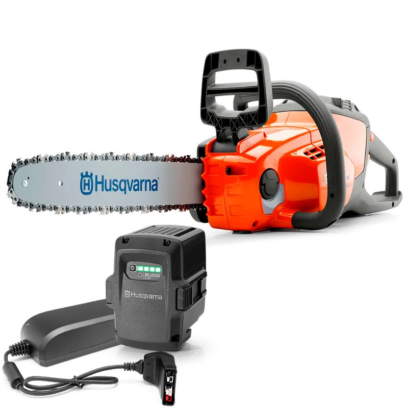Motosserra Husqvarna a Bateria 120i com Bateria BLi200 5,2 Ah e Carregador de Bateria Husqvarna QC80