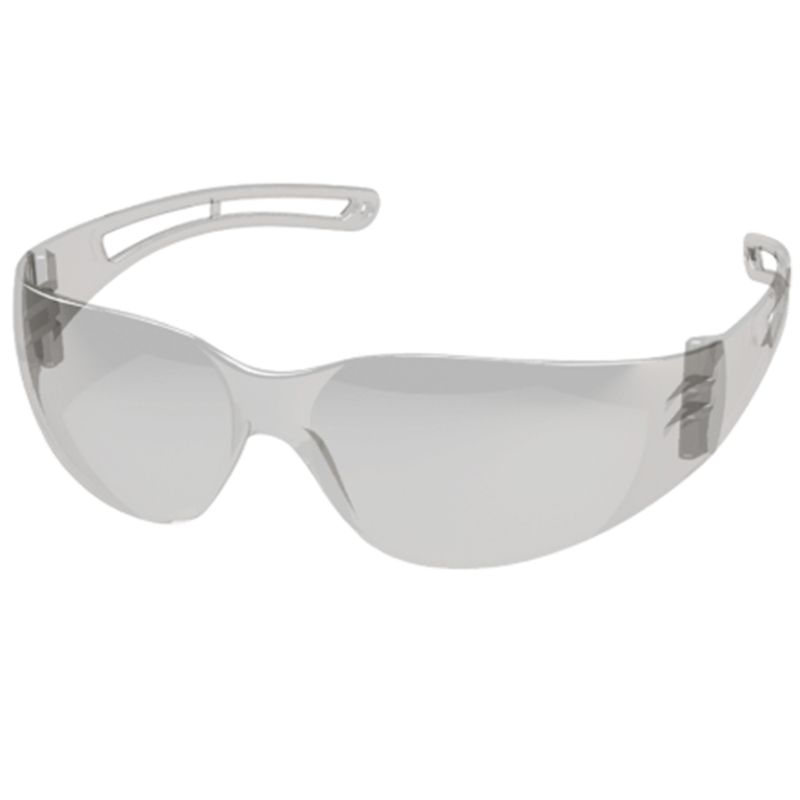 O Óculos de Segurança Valeplast Incolor New Stylus Leopardo, com armação e visor confeccionados em uma única peça de policarbonato, com ponte e apoio nasal injetados do mesmo material, hastes tipo espátula, confeccionadas do mesmo material do visor e articuladas através de pino metálico