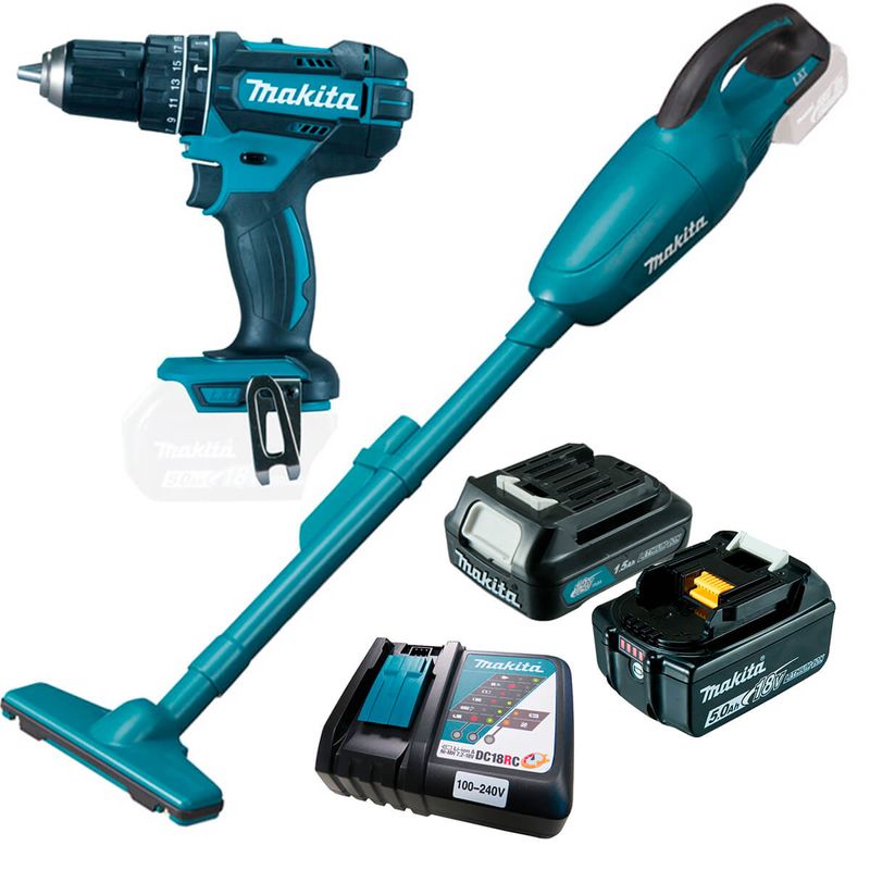 Parafusadeira e Furadeira de Impacto Makita DHP482Z e Aspirador de Pó Makita DCL180Z com 4 Baterias 1 Carregador e Maleta acompanha: