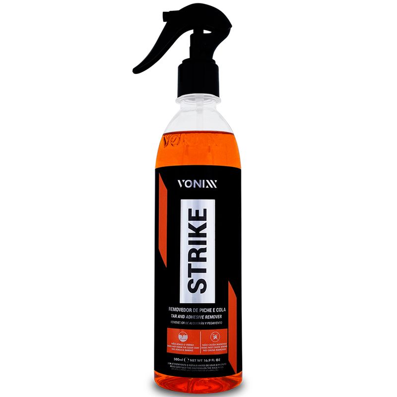 O Strike Vonixx é um produto de fórmula balanceada que age na remoção piche e da maioria de resíduos de colas de adesivos e etiquetas autocolantes em geral