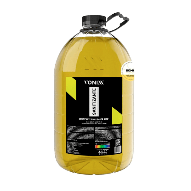 O Sanitizante Finalizador Vonixx é um produto 4x1, desenvolvido exclusivamente para ser aplicado sob forma de pulverização na última etapa da limpeza de estofados, carpetes e tapetes. Sua fórmula mata germes, bactérias e deixa um ativo residual com efeito bacteriostático, diminuindo as chances de crescimento de germes por até três meses. O produto promove agradável aroma na superfície e toque de maciez nas fibras.